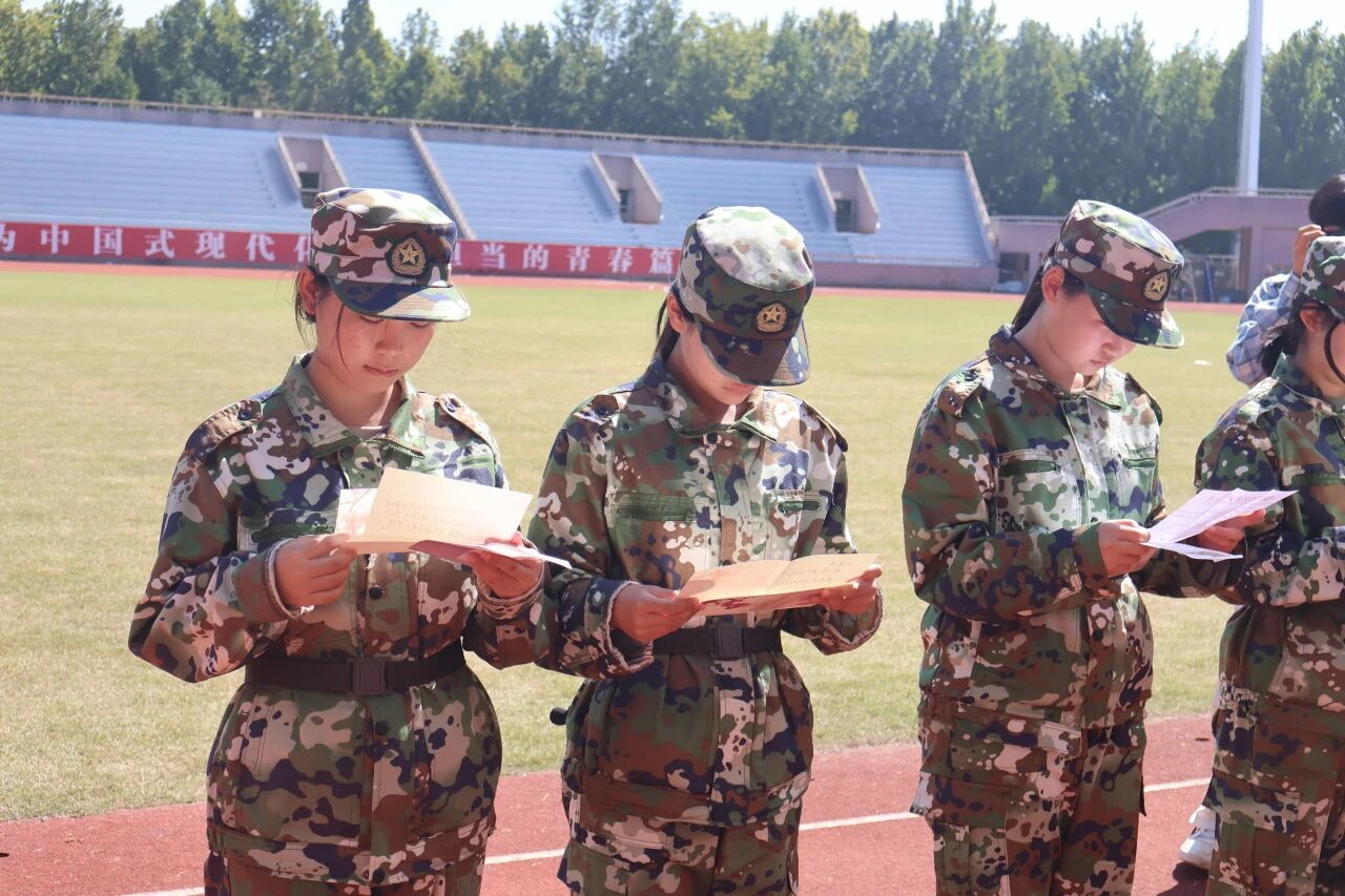 9月25日军训汇演前,校党委副书记赵楠、学工部部长崔炜、笃行书院党委书记杨睿来到军训现场为同学们发放家书。杨睿向学生详细介绍了迎新时家书征集的全过程,让大家了解到在这份惊喜“礼物”的背后,家长、书院和学校的共同心意。