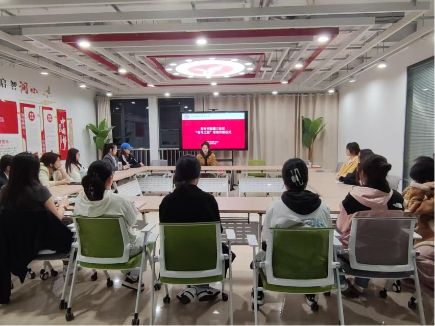 青马工程开班仪式暨第一次培训由馨3社区团委书记吕皓洁主讲,在开班仪式上,她对青马工程培训为党育人的政治功能进行讲解,就党的创新理论、重大政策及社会热点进行专题辅导,增强了学员们的政治意识。